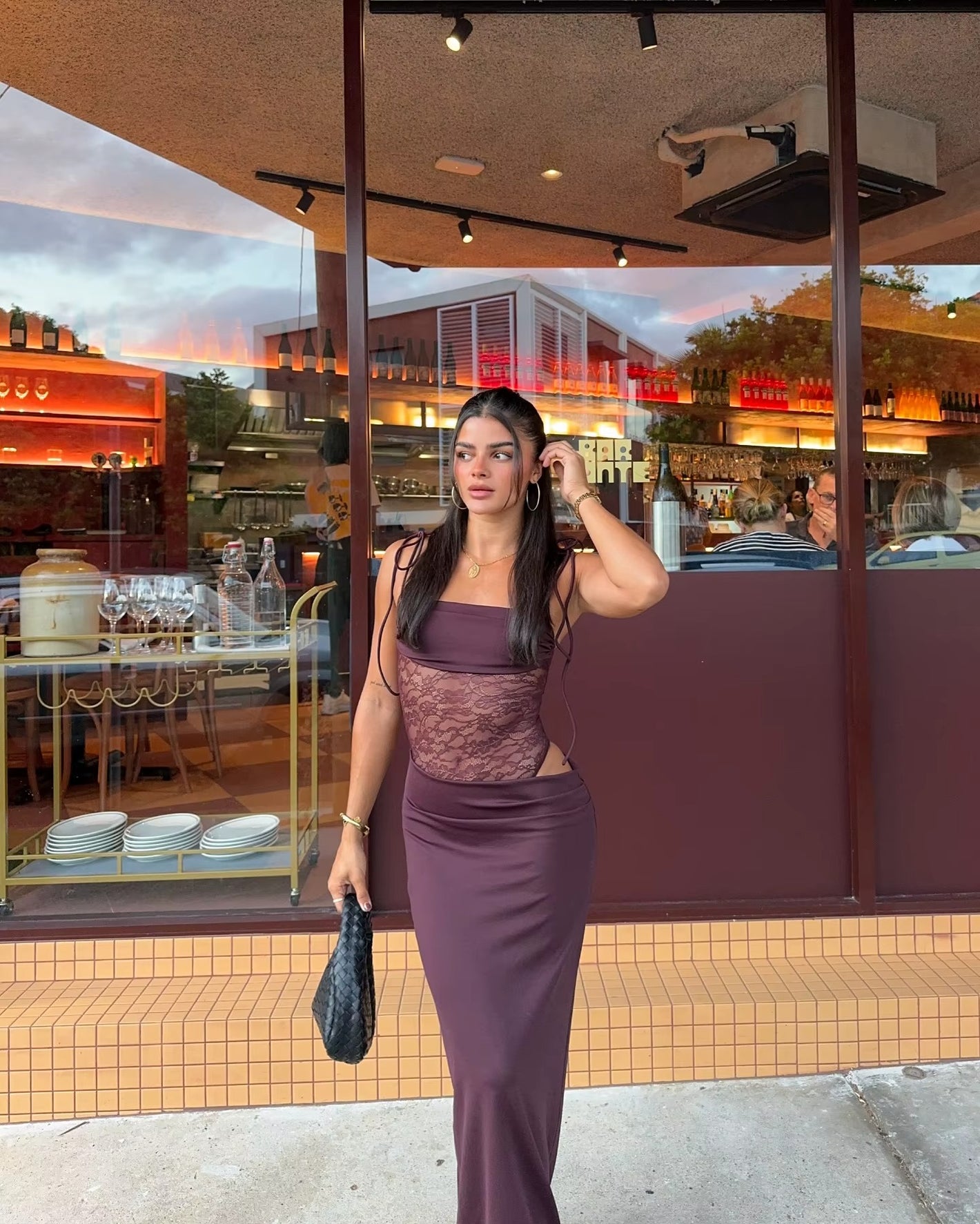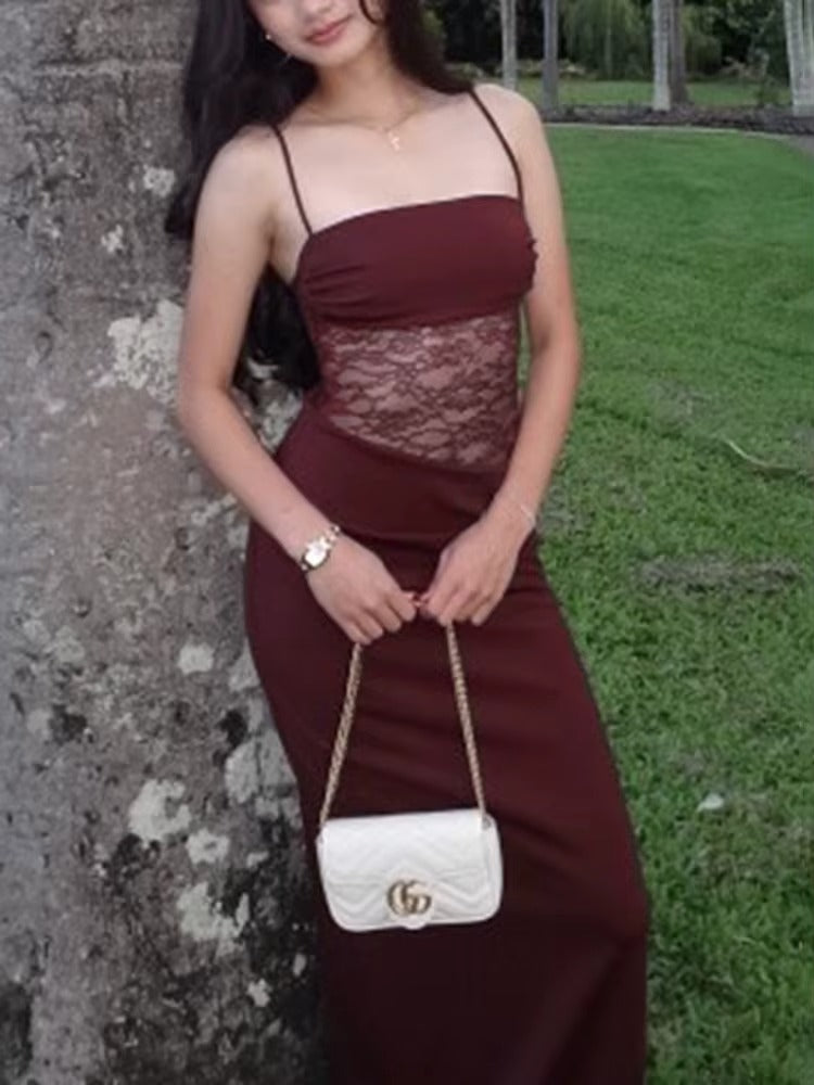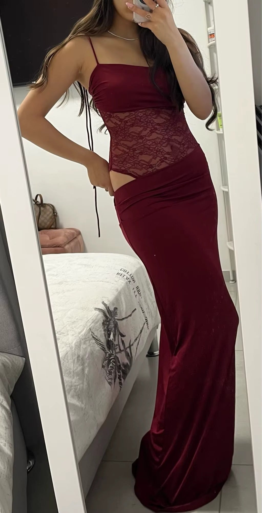This dress enhances your silhouette with its sleek design and sheer lace waist detail — made to turn heads at every step. Perfect for nights when you want to feel confident and unforgettable. 💫